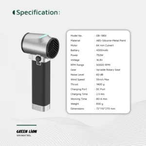دمنده توربو گرین لاین GB-186X | موتور 750W، سرعت 50,000RPM، باتری 4000mAh، thrust 1.4kg