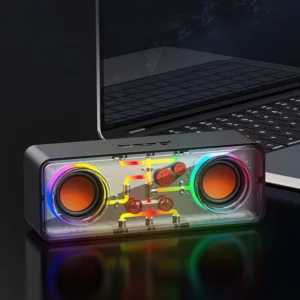 اسپیکر بلوتوثی قابل حمل Recci RSK W38 Space Station | بلوتوث 5.3، صدای Hi Fi، نور RGB، طراحی شفاف