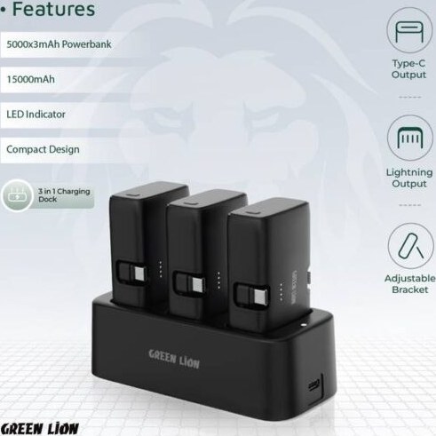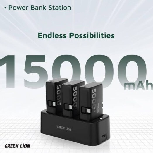 Green Lion 3 In 1 Power Bank Station -Black