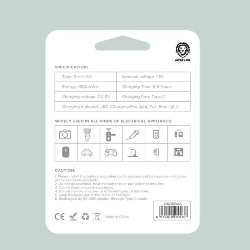 Green Lion Rechargeable Battery AAA 1.6V Alkaline Battery