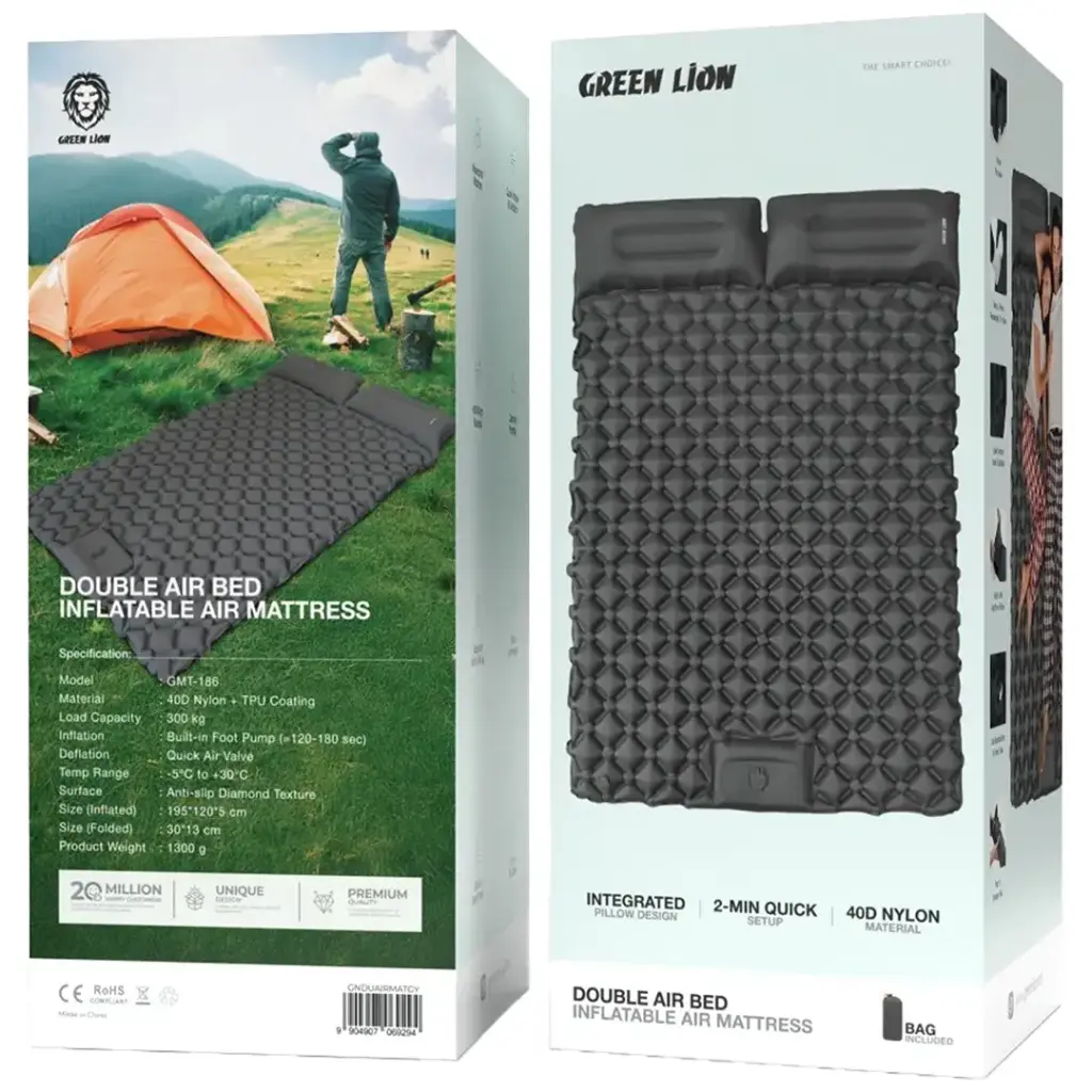 Green Lion Double Air Bed Inflatable Air Mattress - Gray