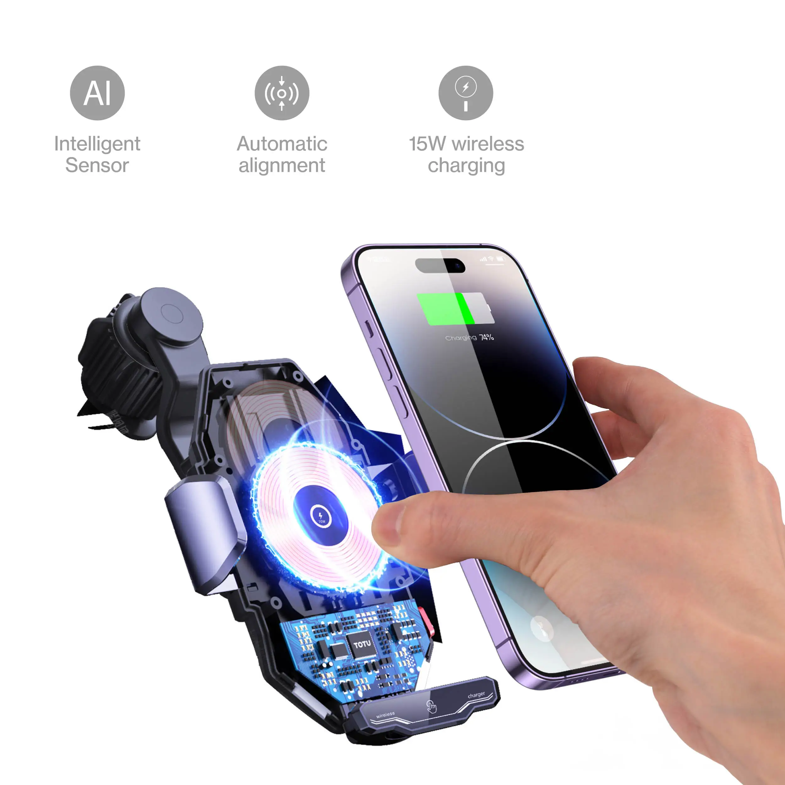 Maxwell Wireless Car Charger And Holder With Intelligent Sensor