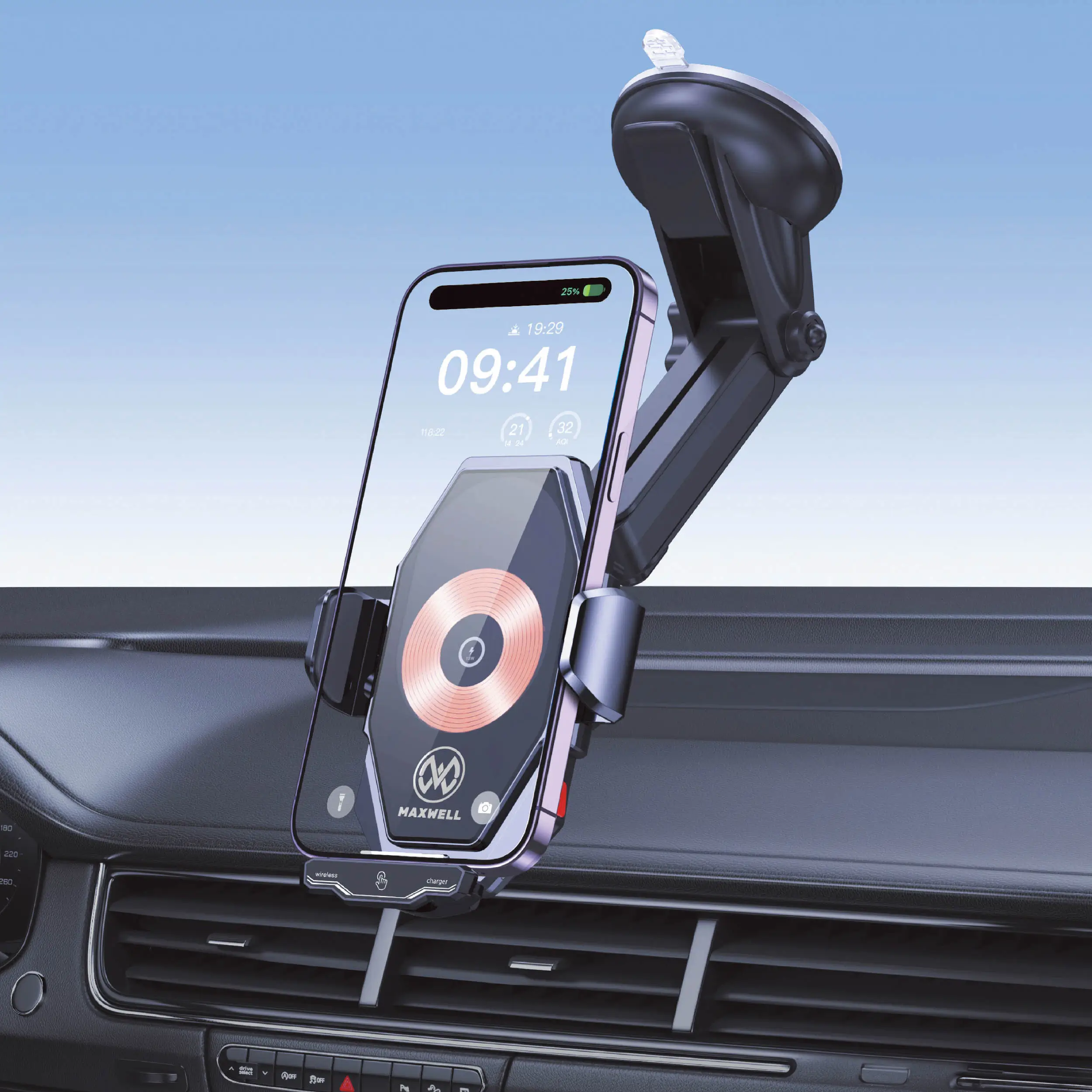 اگر به دنبال یک پایه نگه‌دارنده مدرن و ایمن برای گوشی خود در خودرو هستید، Maxwell Wireless Car Charger & Holder بهترین انتخاب است. این محصول علاوه بر شارژ وایرلس سریع، با سنسور هوشمند گوشی شما را به‌صورت خودکار قفل می‌کند.