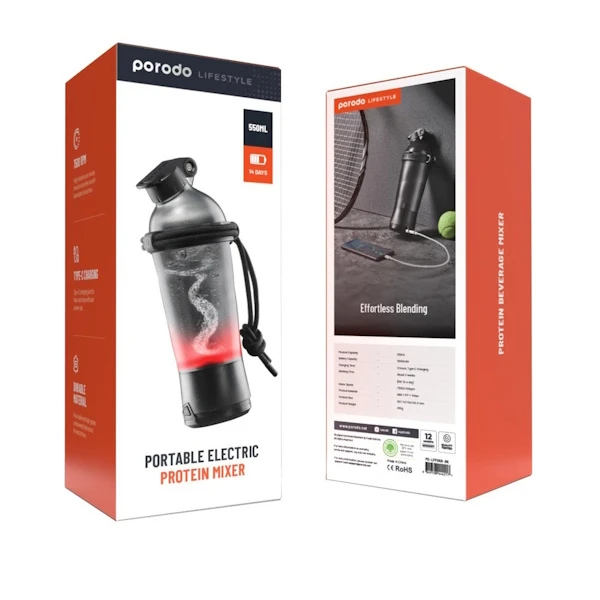 مخلوطکن پروتئین برقی قابل حمل پرودو (Porodo) مدل PD-LFPSKR ظرفیت 550 میلی لیتر