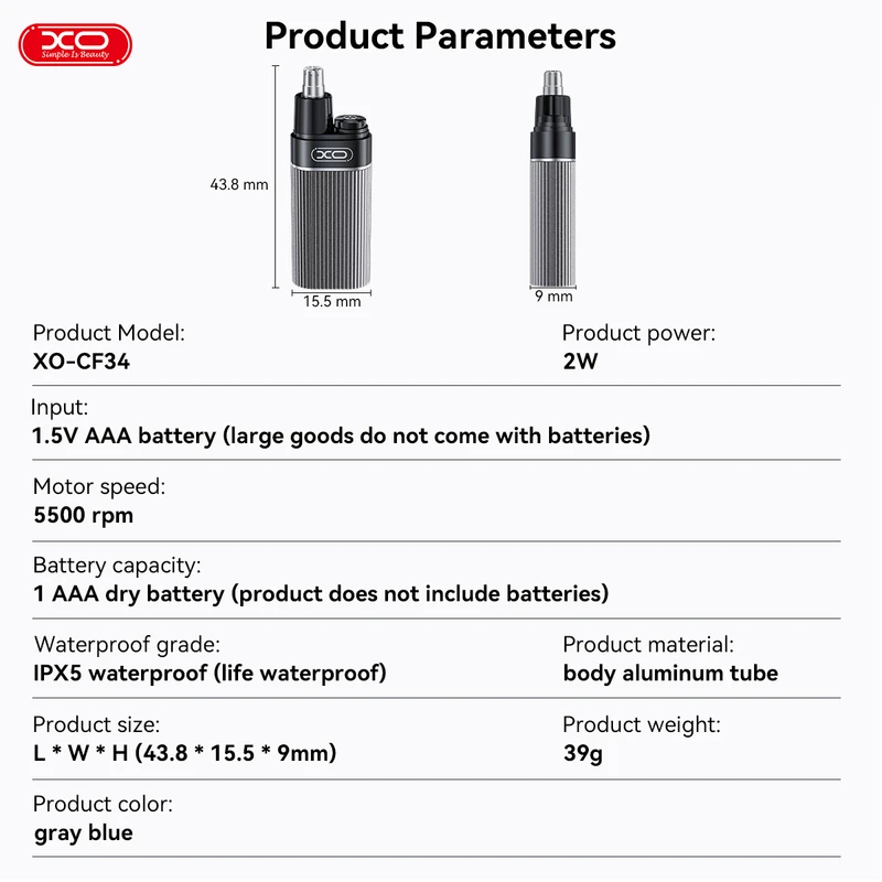 موزن گوش و بینی شارژی XO مدل CF34 | اصلاح ایمن، سریع و ضدآب
