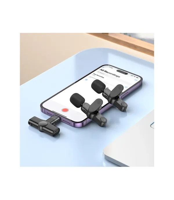 میکروفون یقهای بیسیم Borofone BFK12 | اتصال Lightning و Type-C، باتری 70mAh، صدای شفاف و بدون نویز