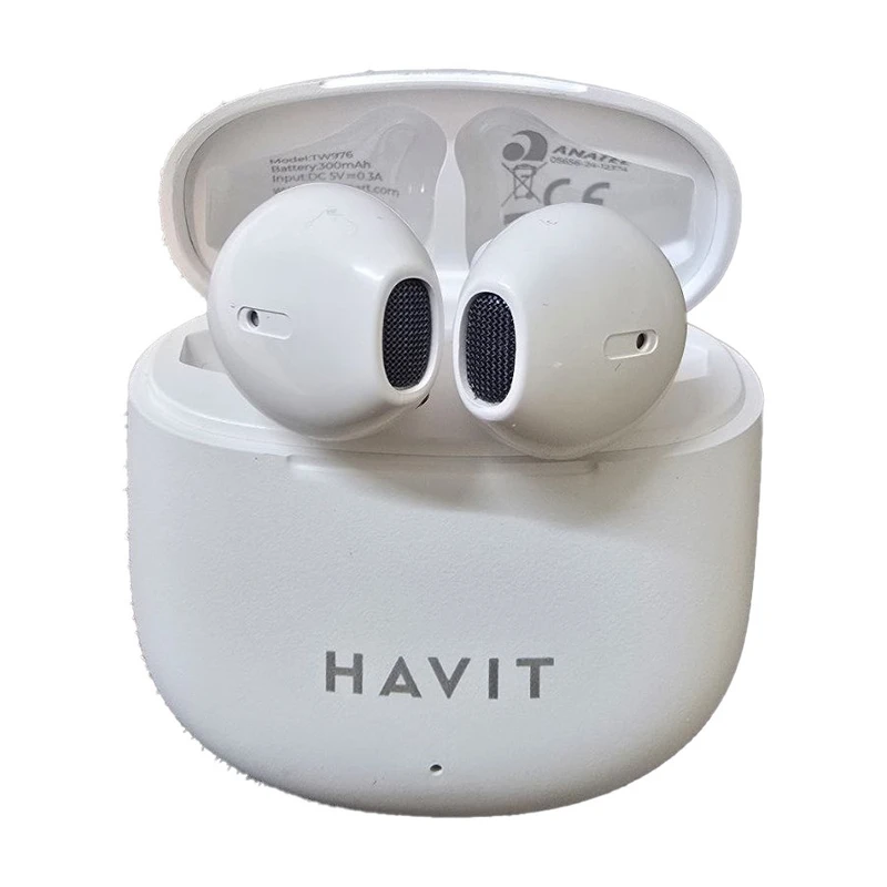 هندزفری بلوتوثی هویت TW976 با بلوتوث 5.3، مقاومت IPX5، کیس شارژ 300mAh و طراحی ارگونومیک؛ مناسب موسیقی و مکالمه روزانه.