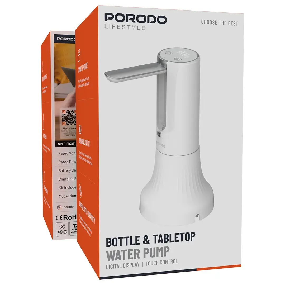 Porodo Lifestyle Bottle & Tabletop Water Pump with Digital Display & Touch Control - White