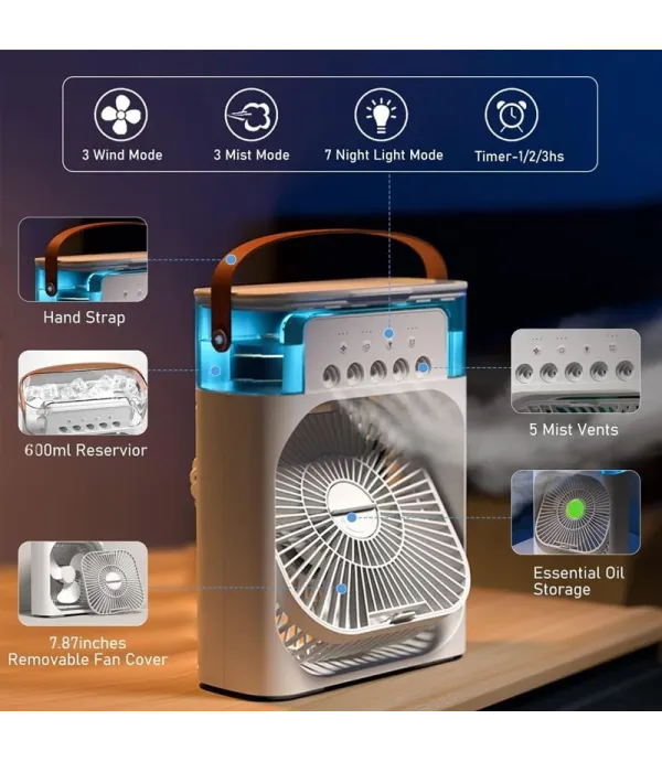 این پنکه چندمنظوره، ترکیبی از قدرت خنککنندگی و رطوبترسانی است. با طراحی پرتابل و منبع تغذیه شارژی USB، بهترین انتخاب برای محیط کار، خوابگاه، یا سفرهای تابستانی شماست. هم خنک شوید و هم از خشکی هوا جلوگیری کنید!