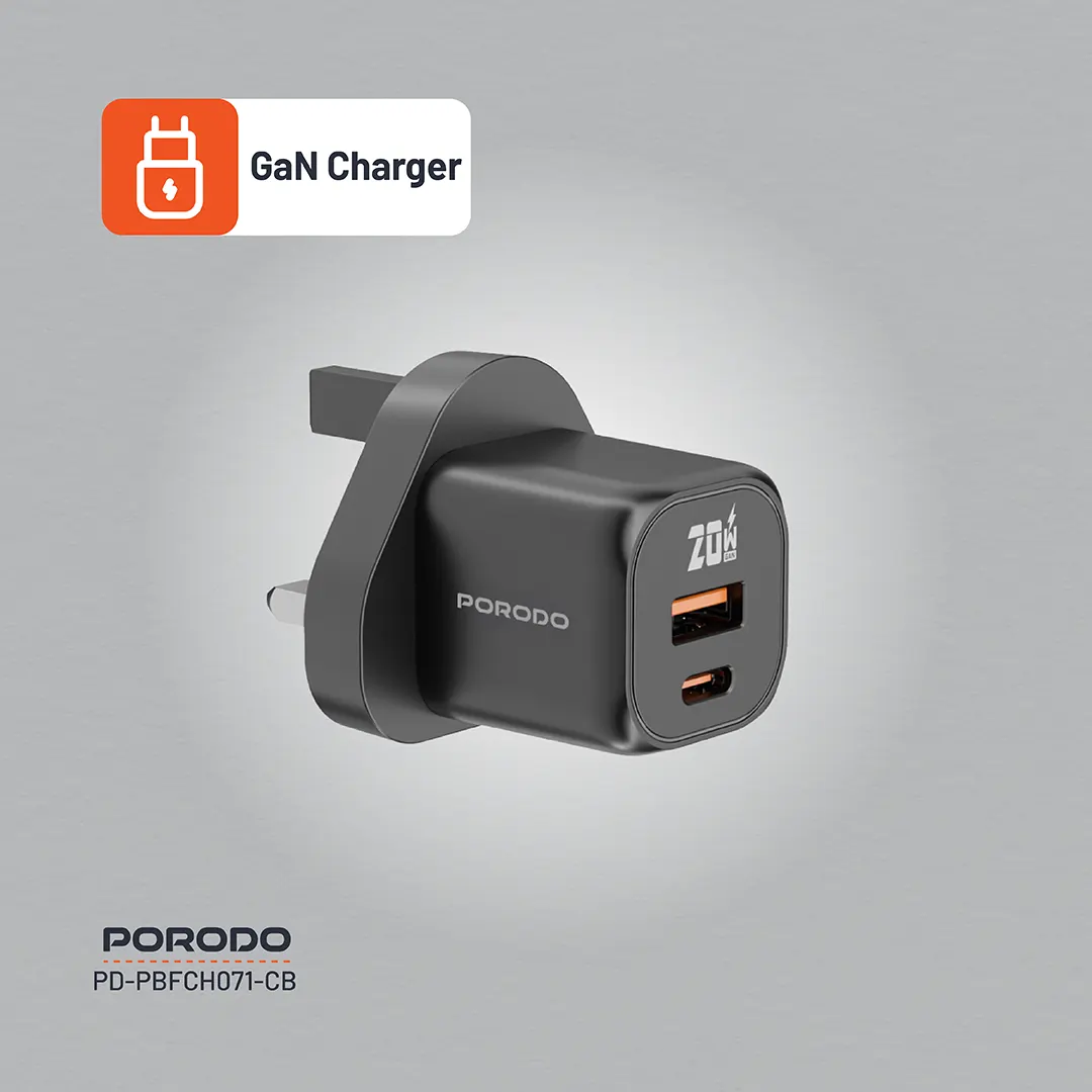 • شارژر GaN دو پورتی: توان بالا با ابعاد کوچک.