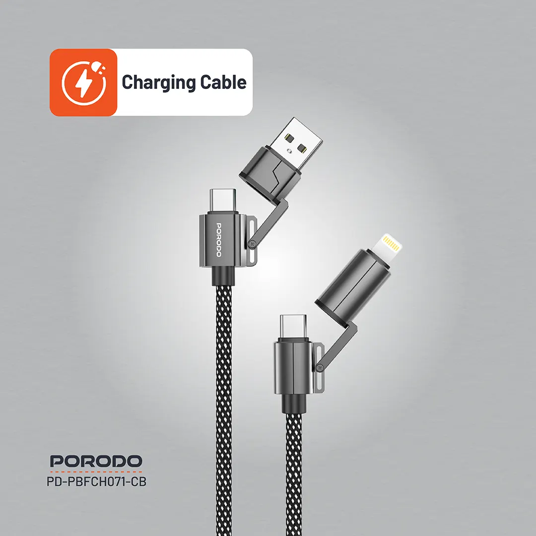 • کابل 4 در 1 آلومینیومی: پشتیبانی از USB-A، USB-C، Lightning.