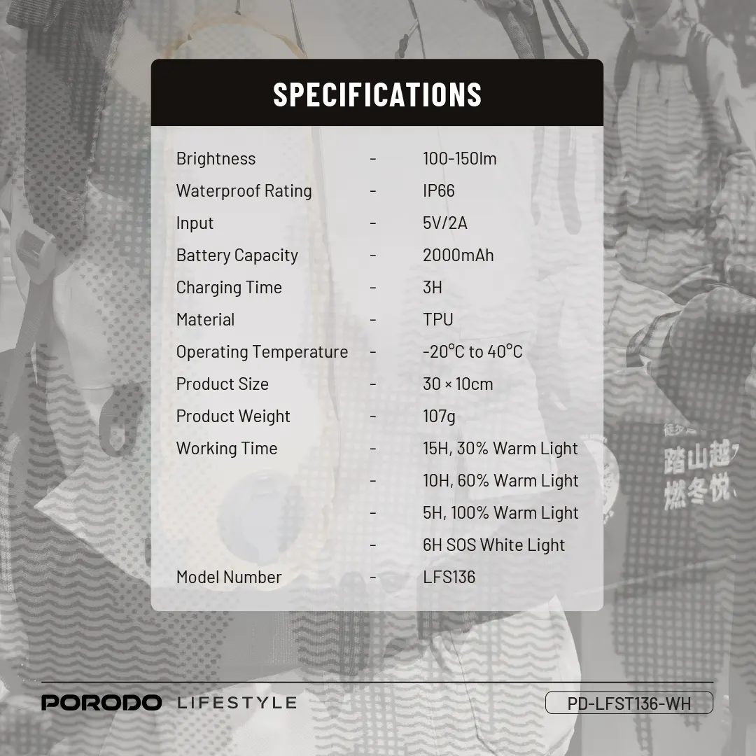 Porodo Lifestyle Inflatable Outdoor Magnetic Tube Light - White