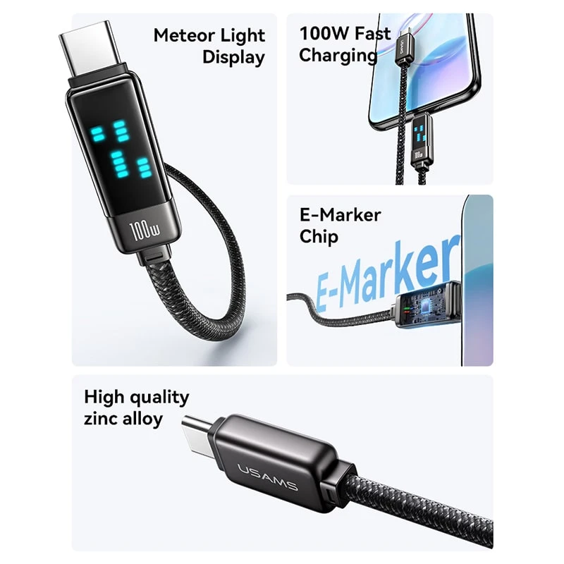 کابل شارژ سریع 100 وات یوسمز مدل SJ744 (USB-C به USB-C) با پشتیبانی از Power Delivery