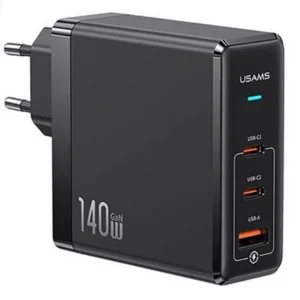 شارژر دیواری یوسمز US-CC168 | توان 140 وات، فناوری GaN، 3 پورت (2×USB-C + 1×USB-A)، شارژ سریع PD/QC