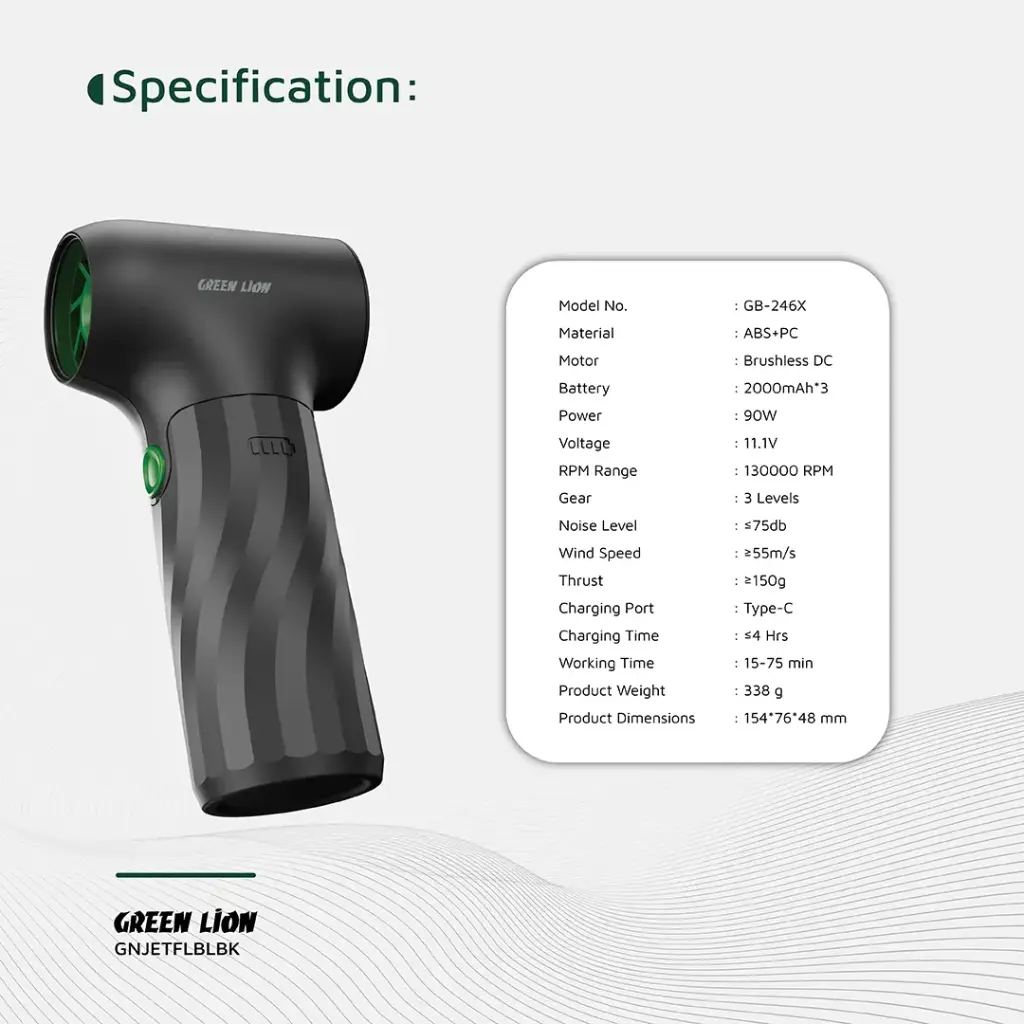جت فن شارژی گرین لاین مدل Jetflow | موتور براشلس 130000RPM، 3 حالت سرعت و باتری قدرتمند